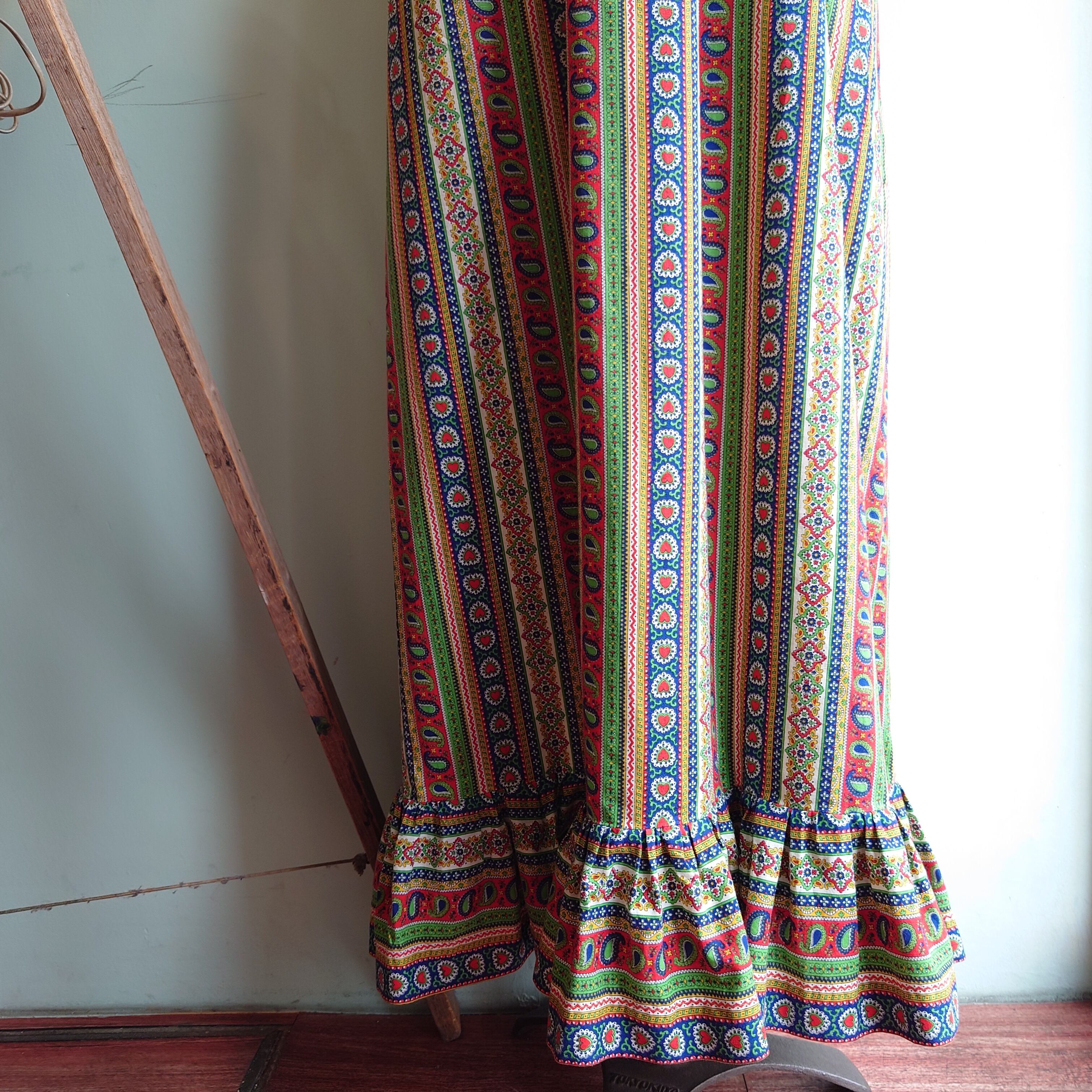 〜70s vintage メキシカンドレス 総柄ワンピース ペイズリー カラフル