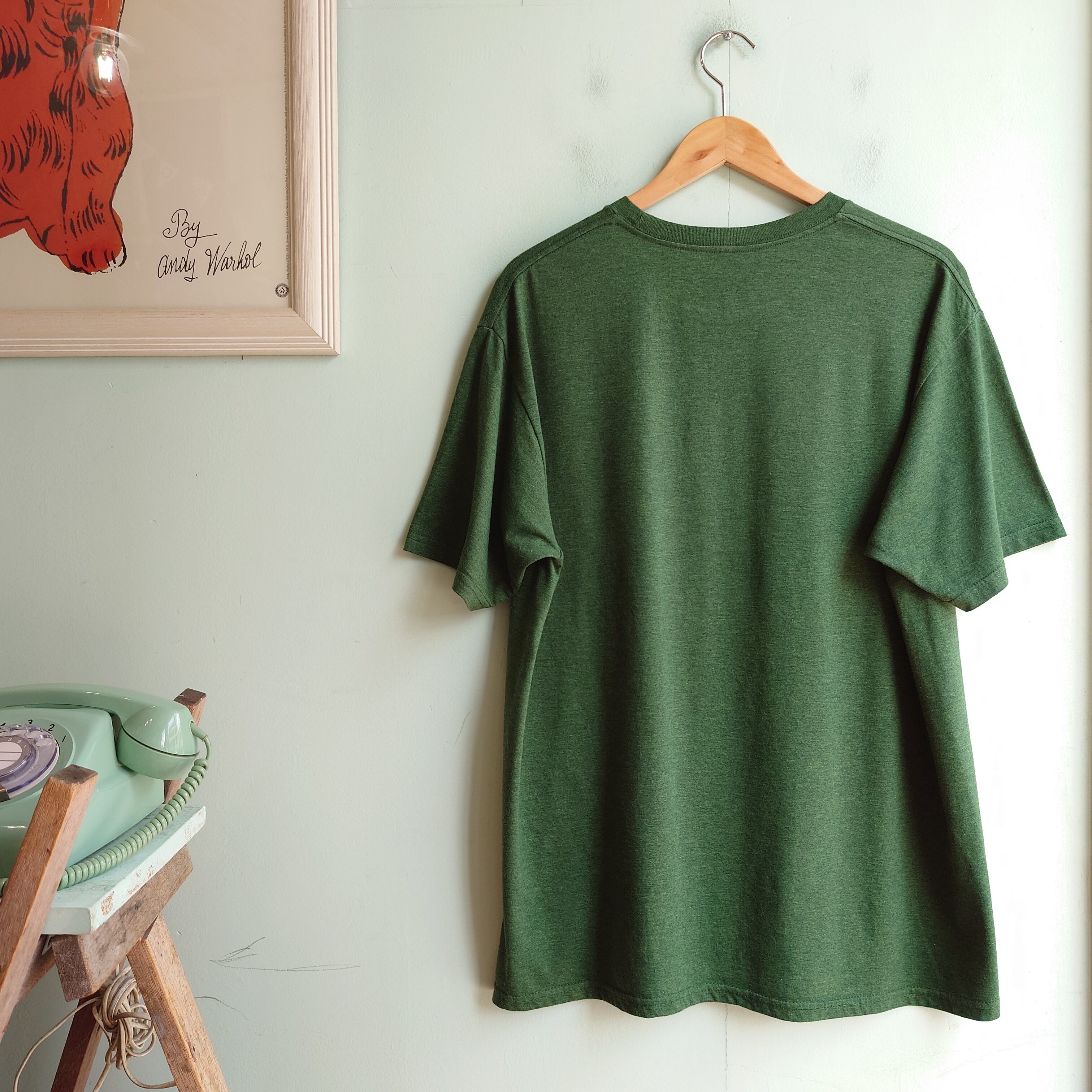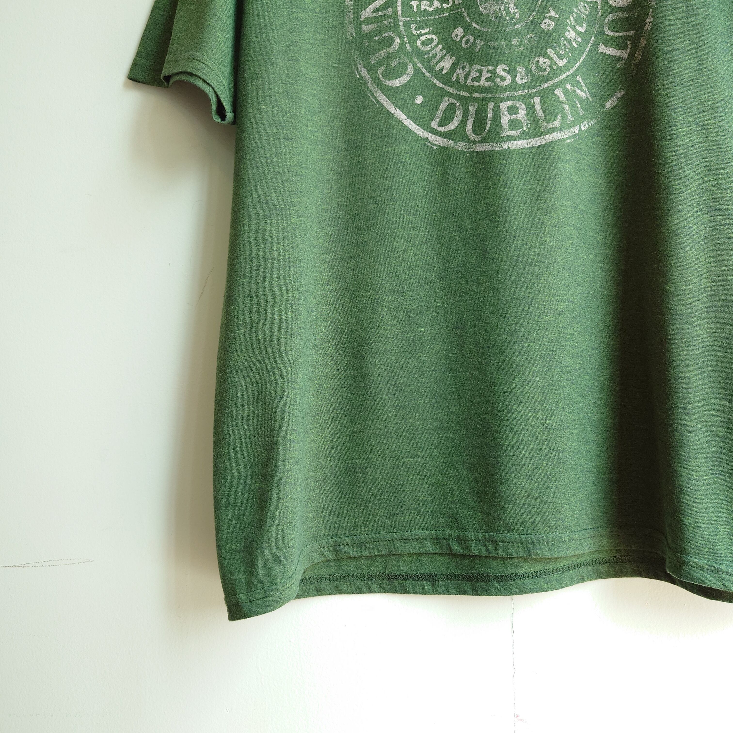 ★アイリッシュビアのキング、ギネスビールのオフィシャルTシャツ。グレーのTシャツをグリーンに染めたような特殊な杢カラーと、滲んだようなプリントがかっこいい大人な一枚。