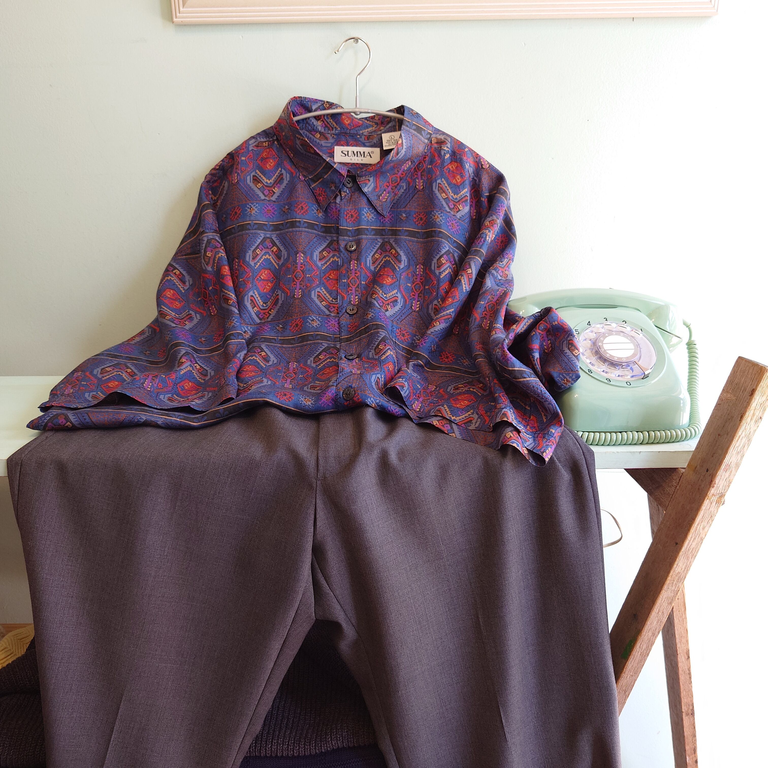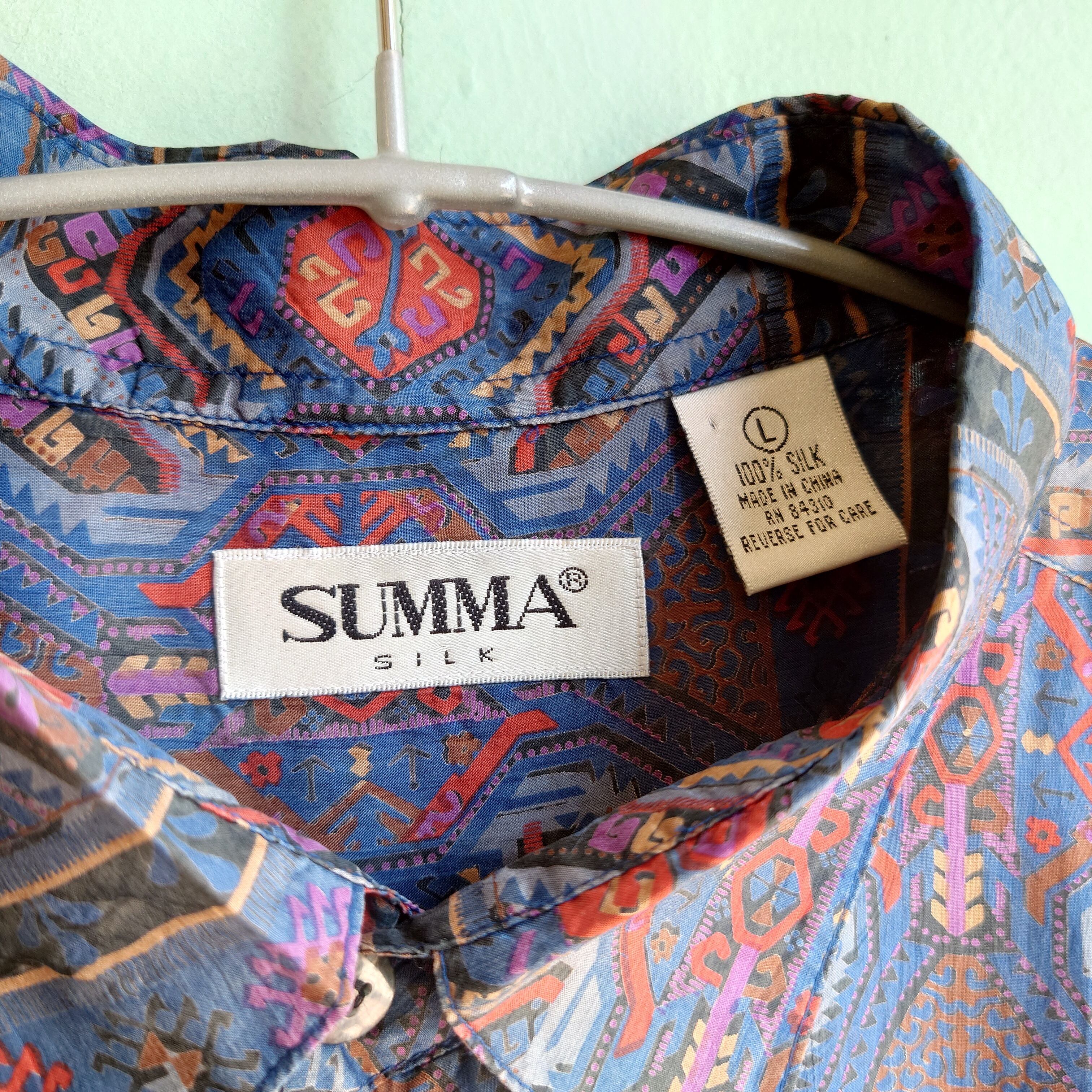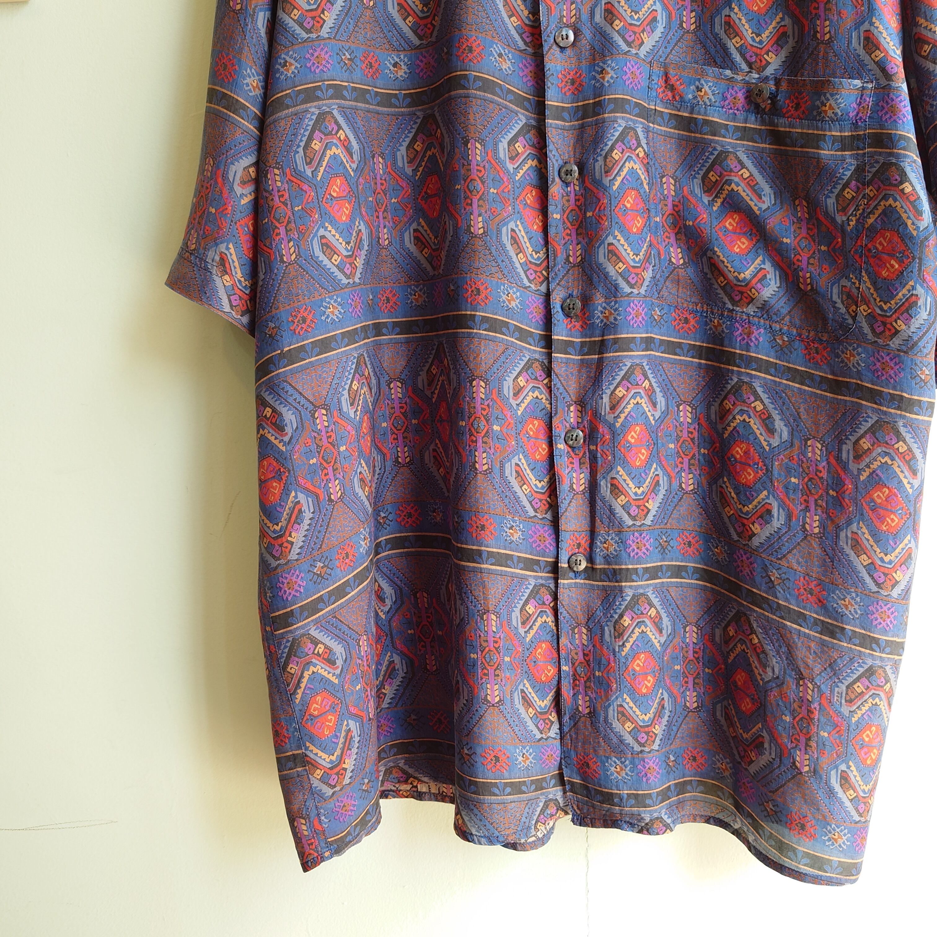 summa 90s vintage ネイティブ柄 総柄シャツ シルク素材 L