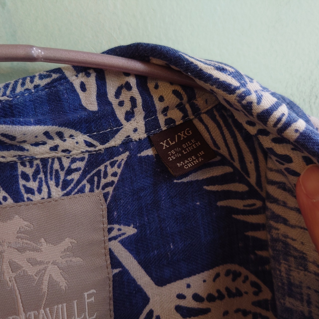 ◎MARGARITAVILE 90s シルク リネン ハワイアンシャツ 青系 リーフ XL
