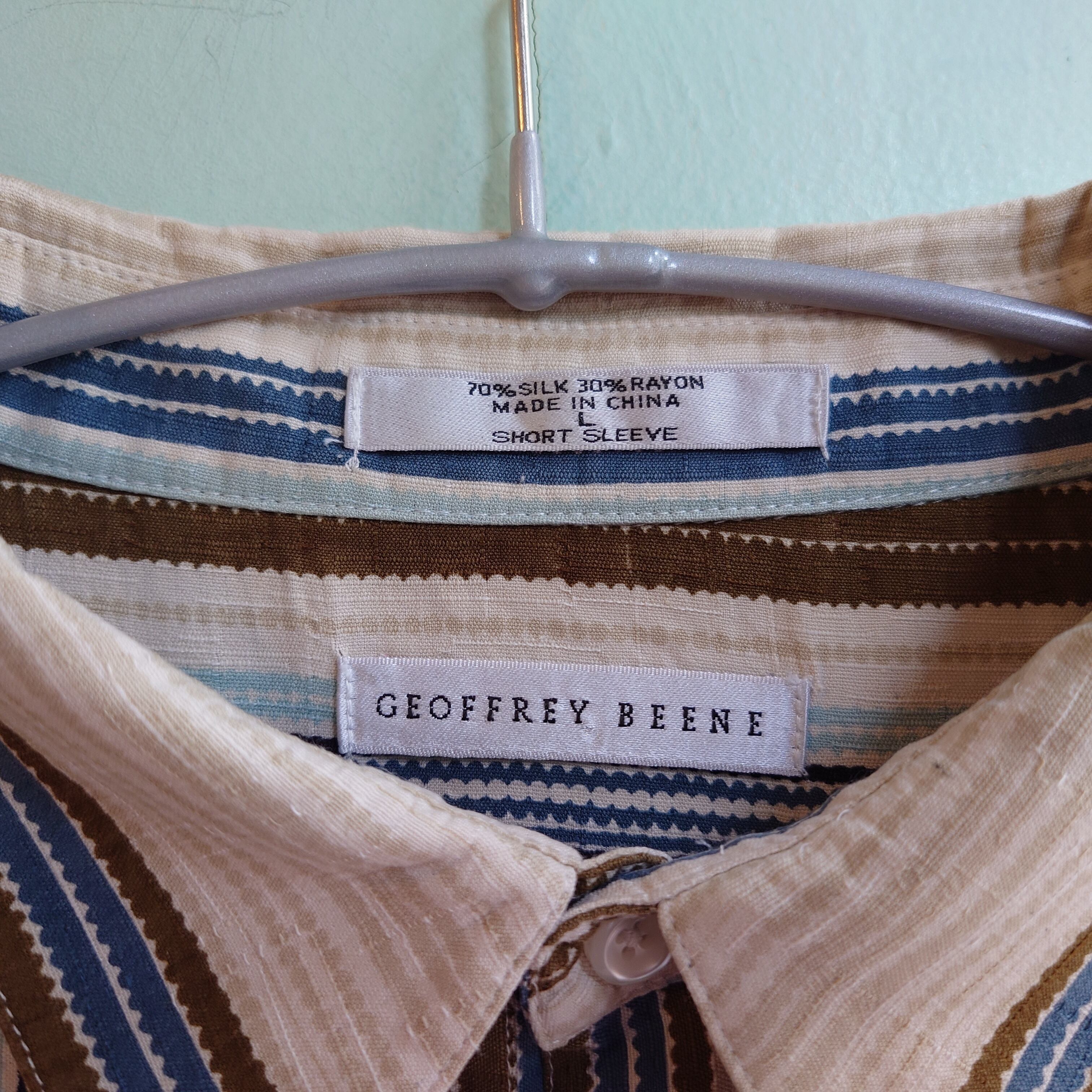 90-00s geoffrey beene ストライプドレスシャツ ボックスシャツ L