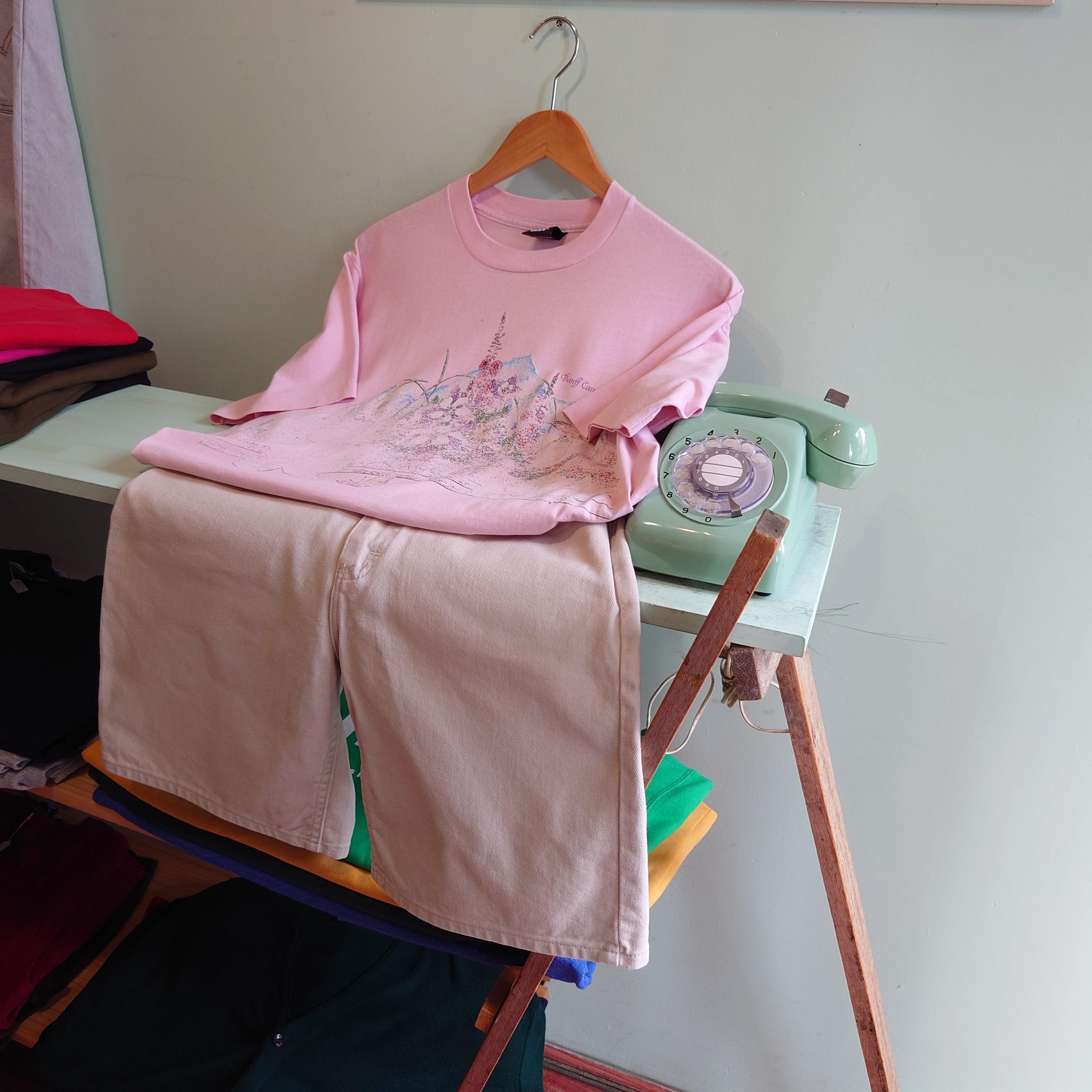 ★〜90s初頭頃のヴィンテージTシャツ。カナダ、バンフのスーベニアアイテム。ほぼ落ちかけたプリントがドリーミーで、うっすらみえるロッキー山脈と、動植物の雰囲気が最高。