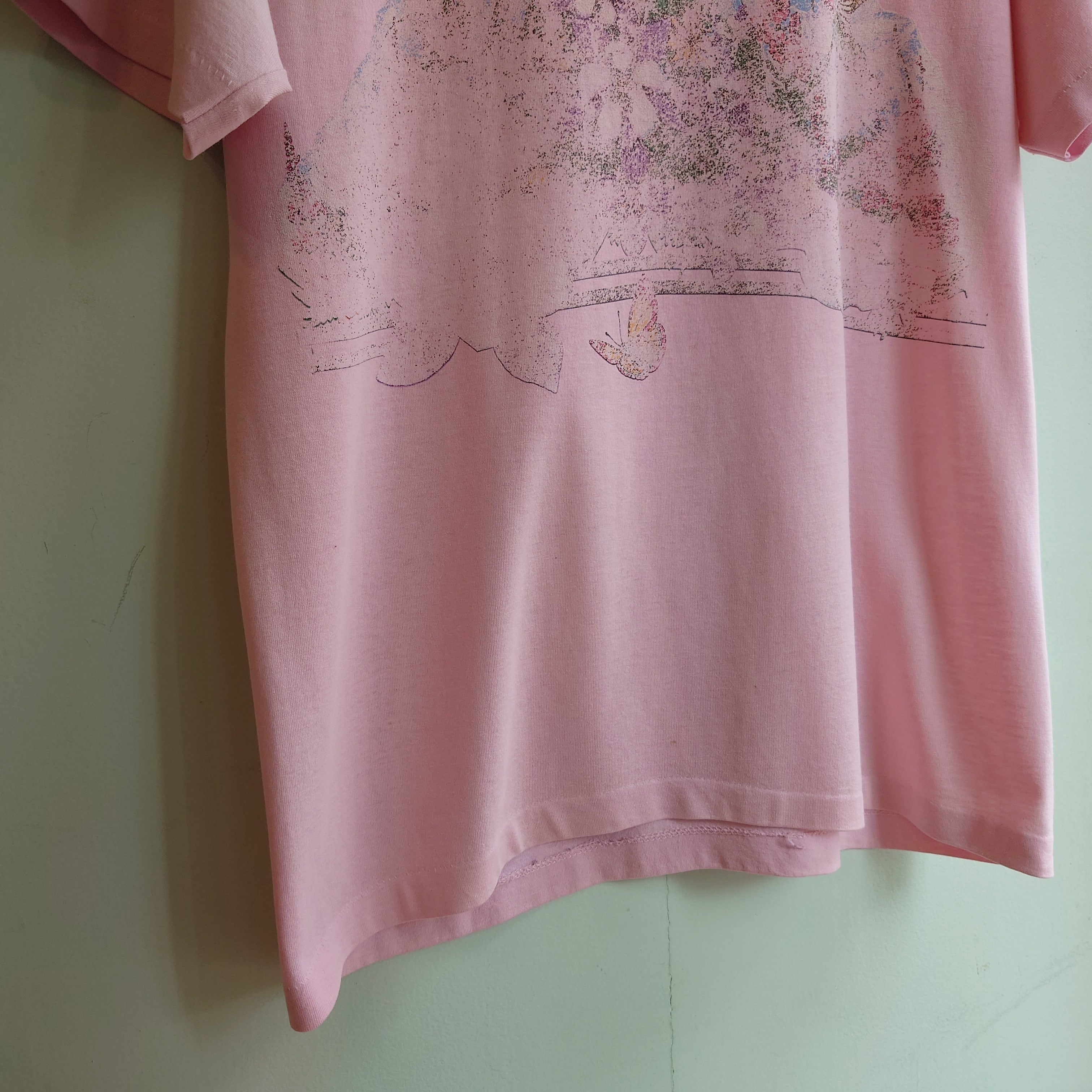 ◎〜90s screen stars カナダ製 バンフ ヴィンテージスーベニアTシャツ 風景画 ベビーピンク L