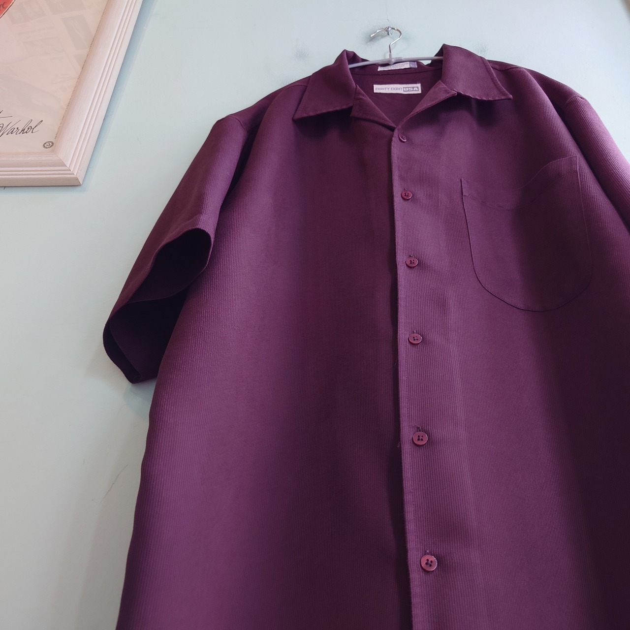 eighty-eight ドレスシャツ オープンカラーシャツ カラーシャツ ブラウン 異素材 L 90s vintage