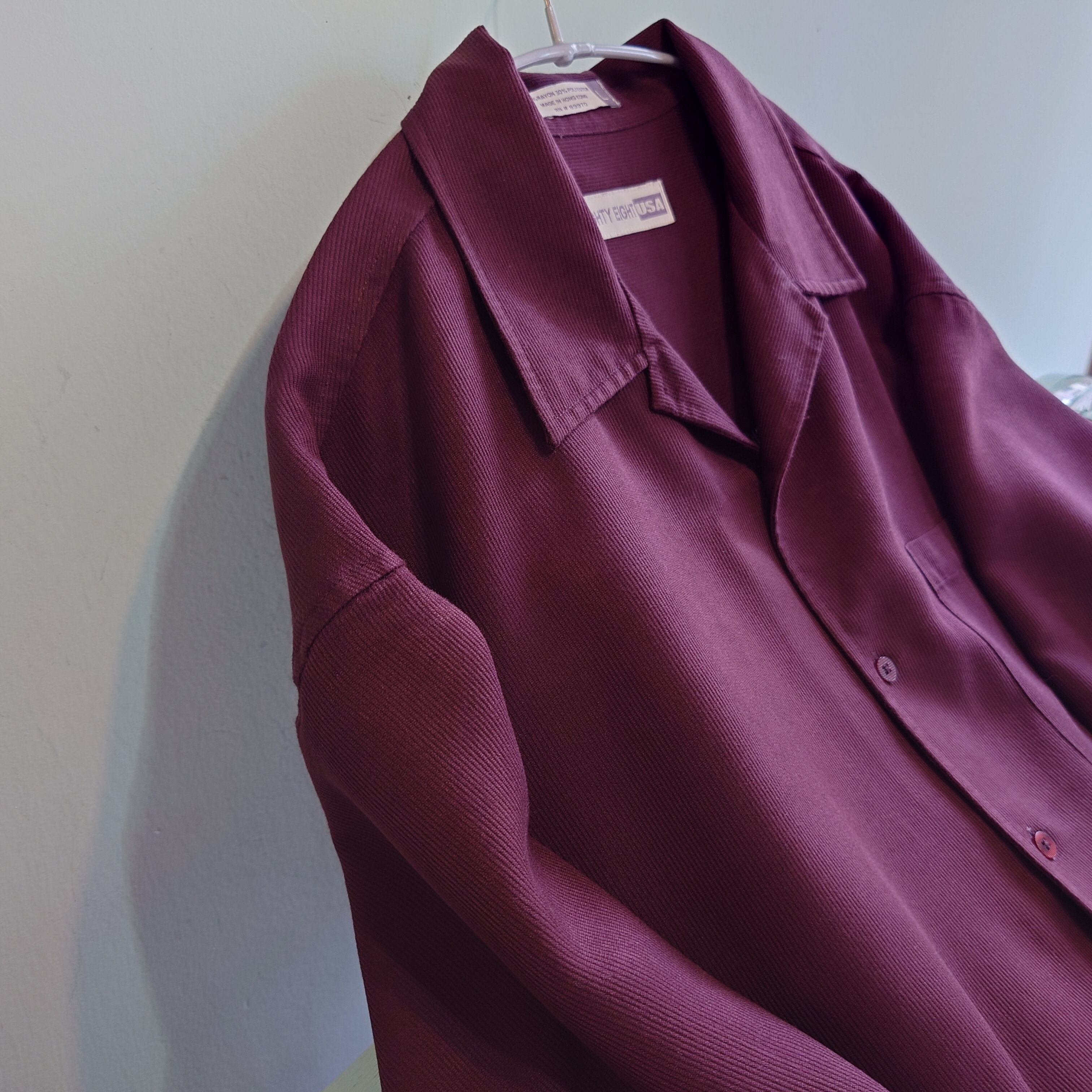 ◎eighty-eight ドレスシャツ オープンカラーシャツ カラーシャツ ブラウン 異素材 L 90s vintage