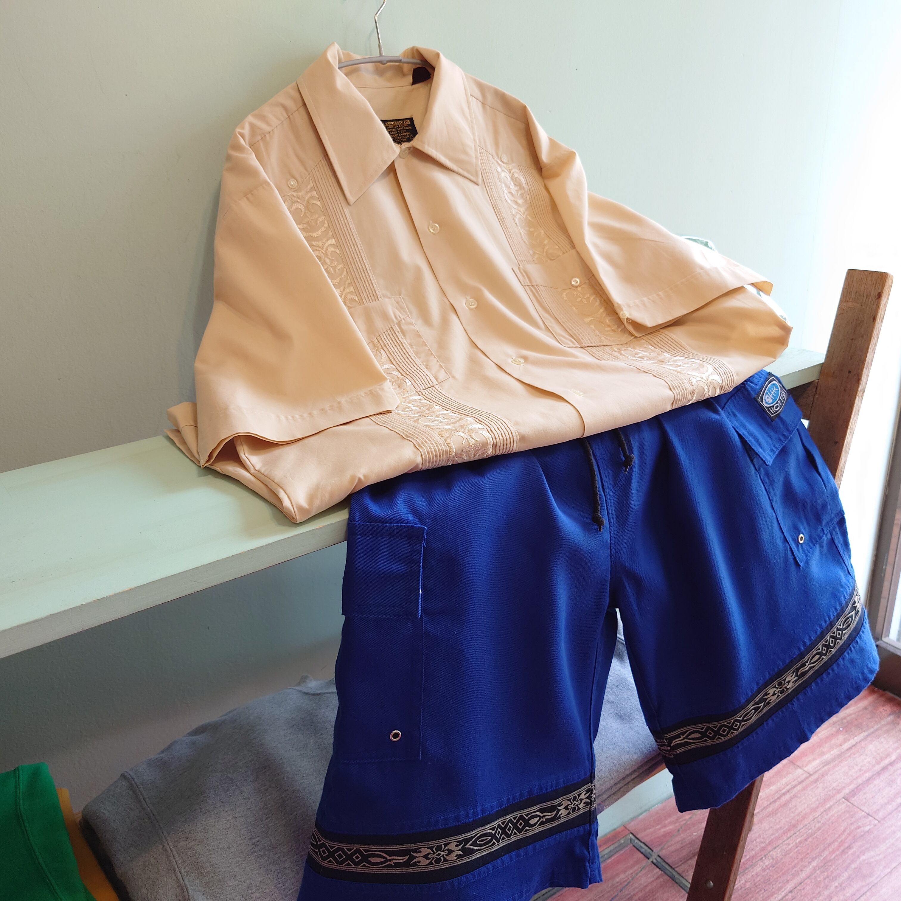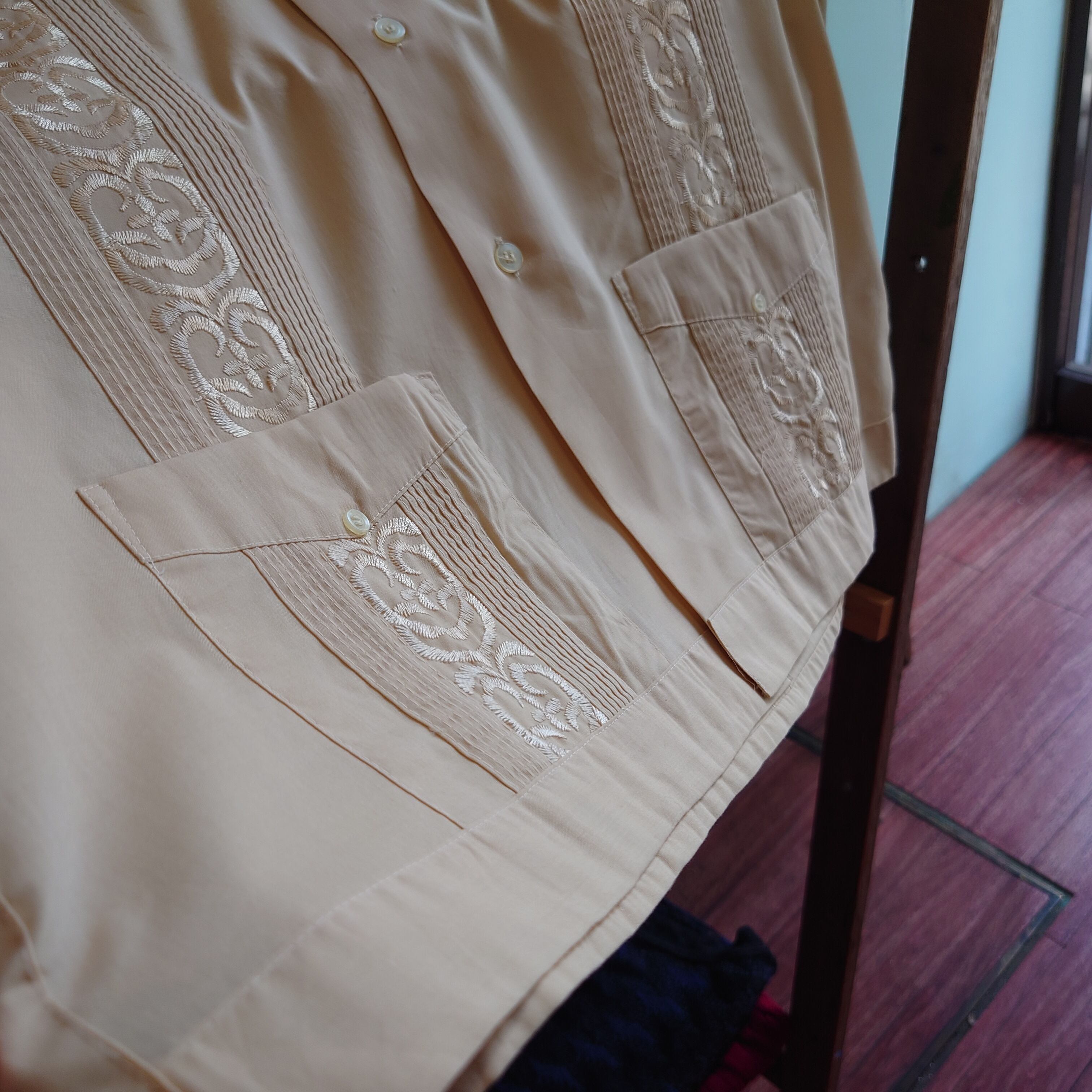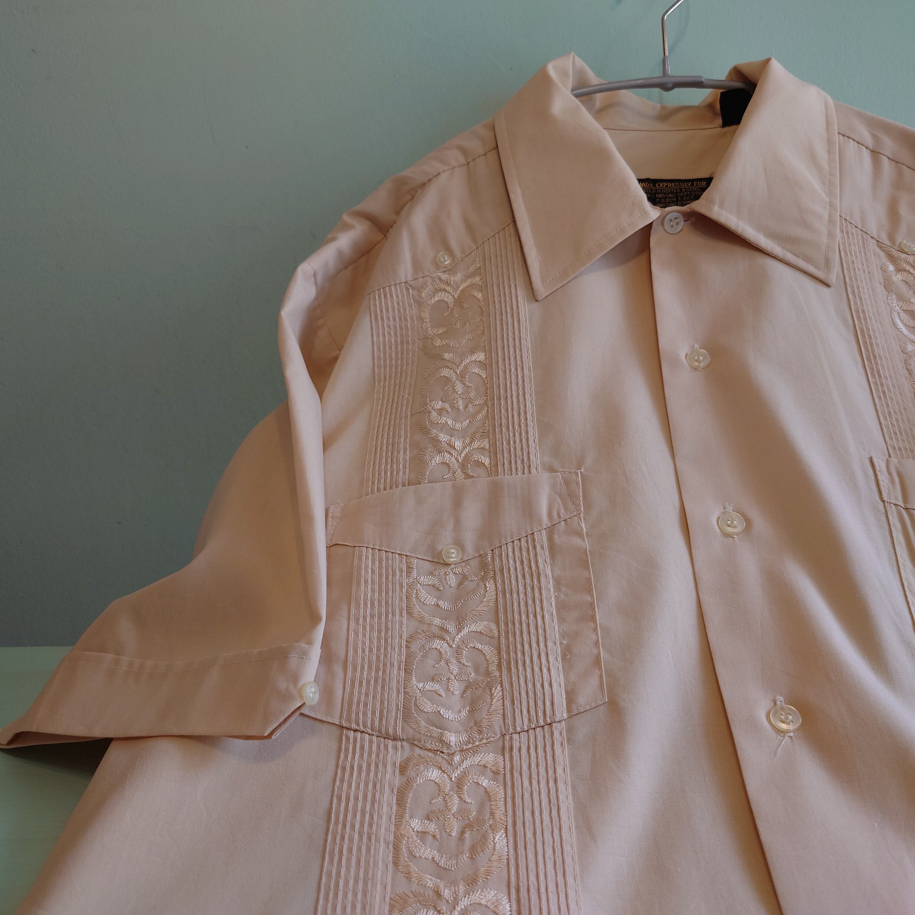 ◎〜90s vintage nassau dept store キューバシャツ グアヤベラシャツ ライトイエロー L程度