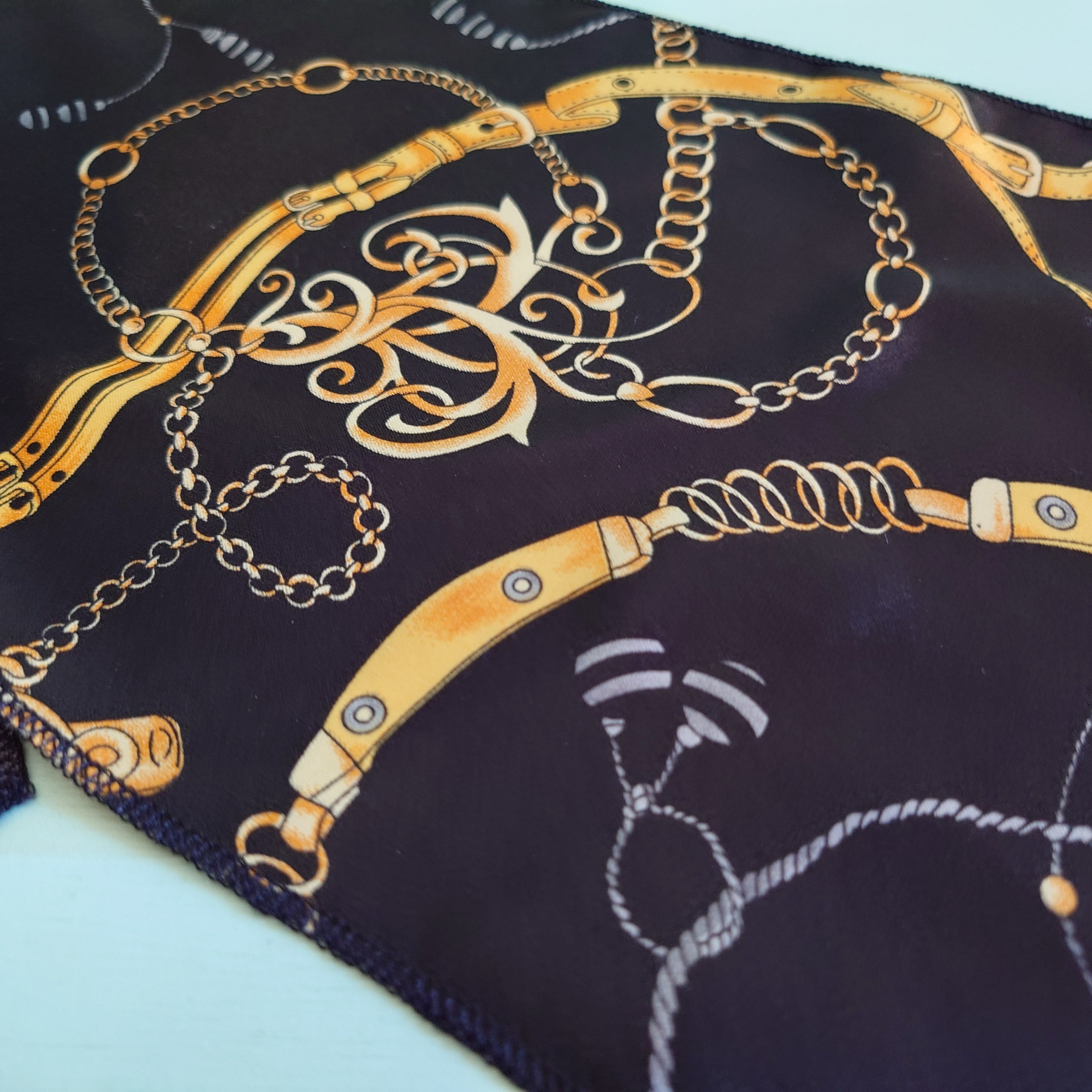 〜90s vintage マフラースカーフ 総柄スカーフ ブラック/ゴールド