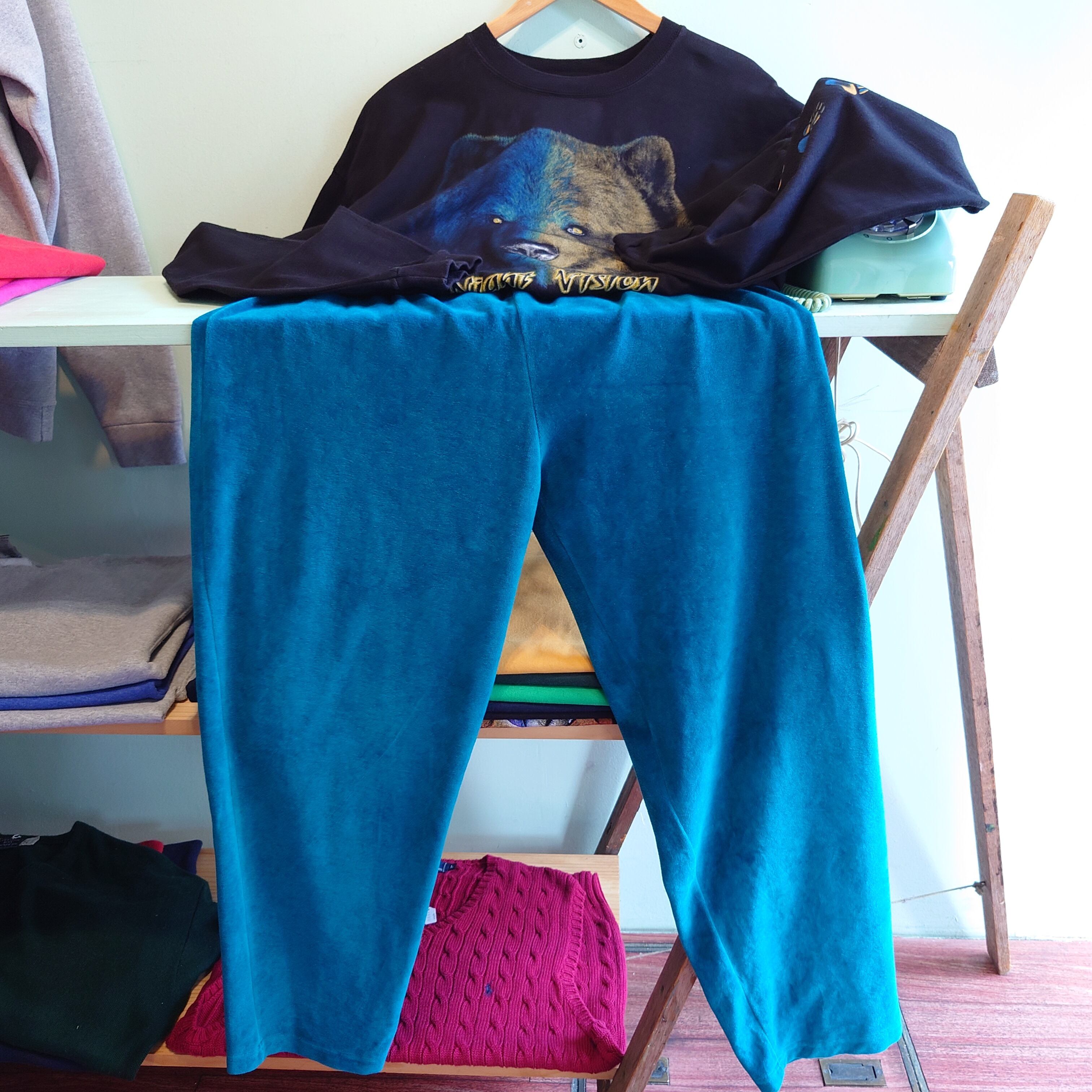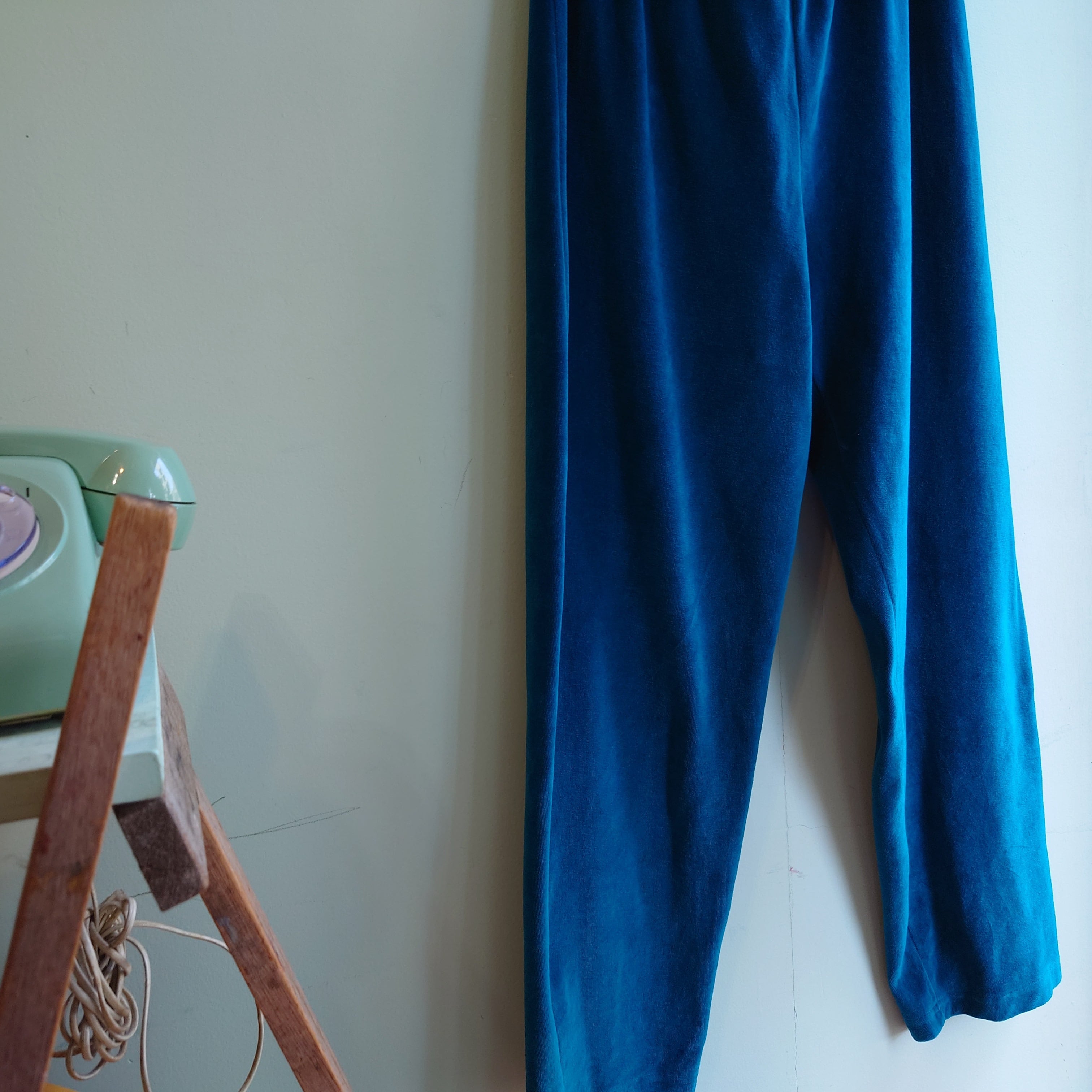 ◎〜90s オールドベロアパンツ 異素材 イージーパンツ レアカラー ブルーグリーン