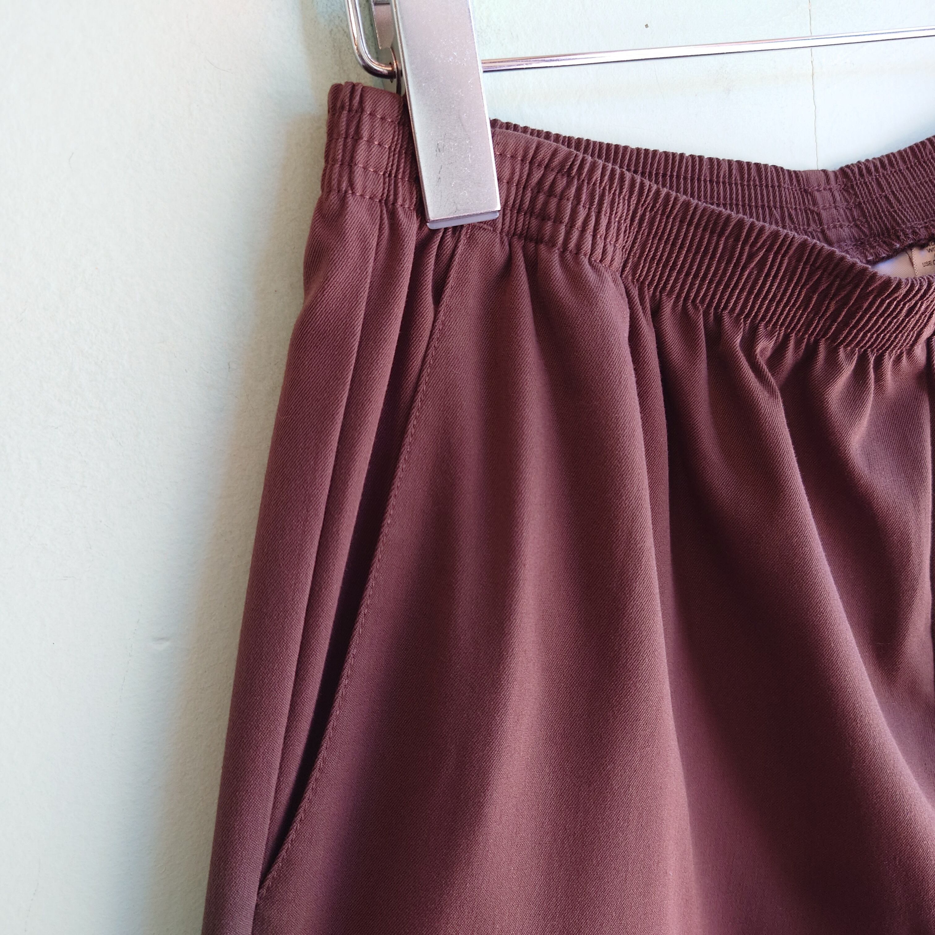 ★ウエストゴムのラフさに、スラックスの光沢感をプラスして、楽だけど大人っぽい使えるイージーパンツ。ゆるっとしたテーパードシルエットは動きやすさも格別。通常のイージースラックスよりもやや薄手で、サラッとしたレア素材。