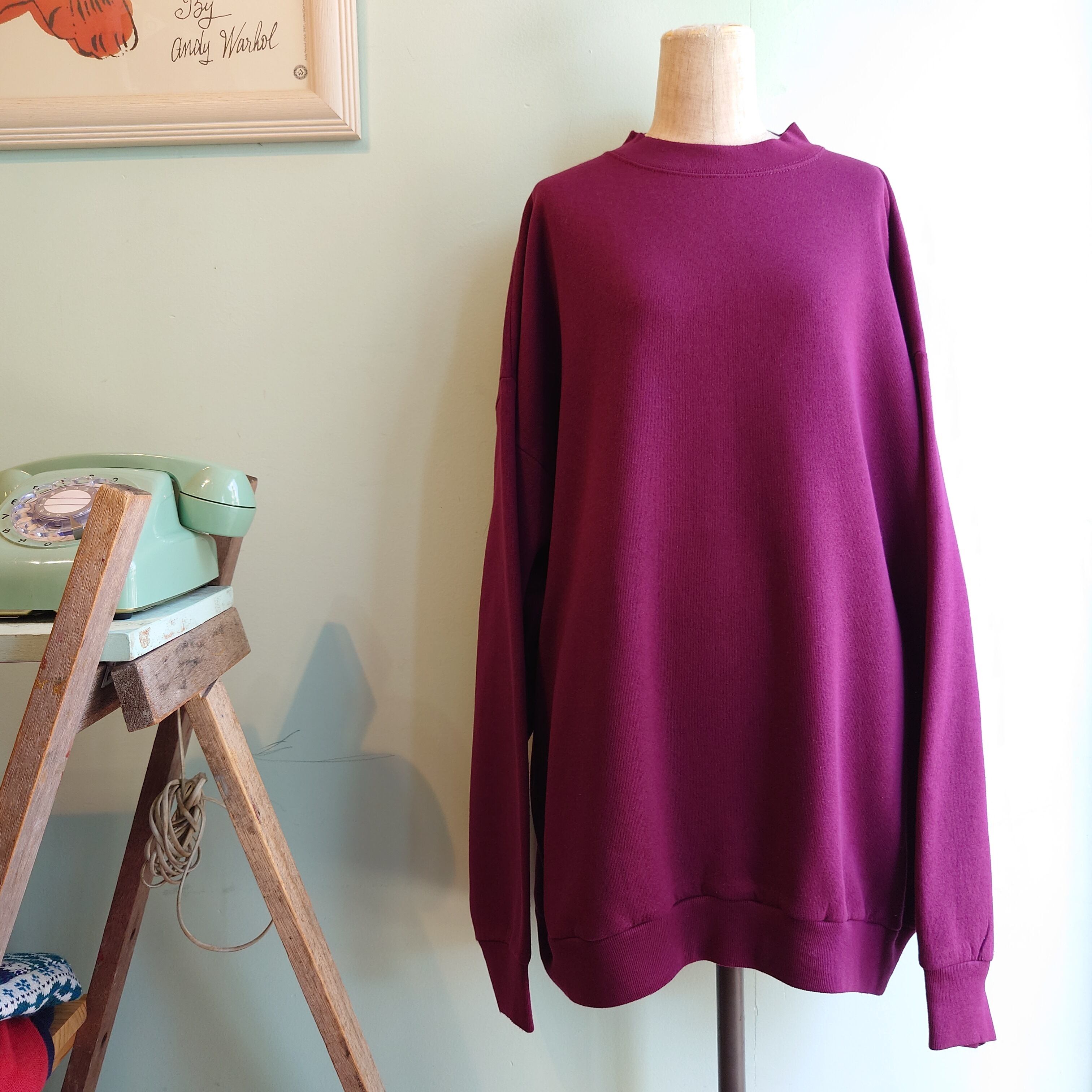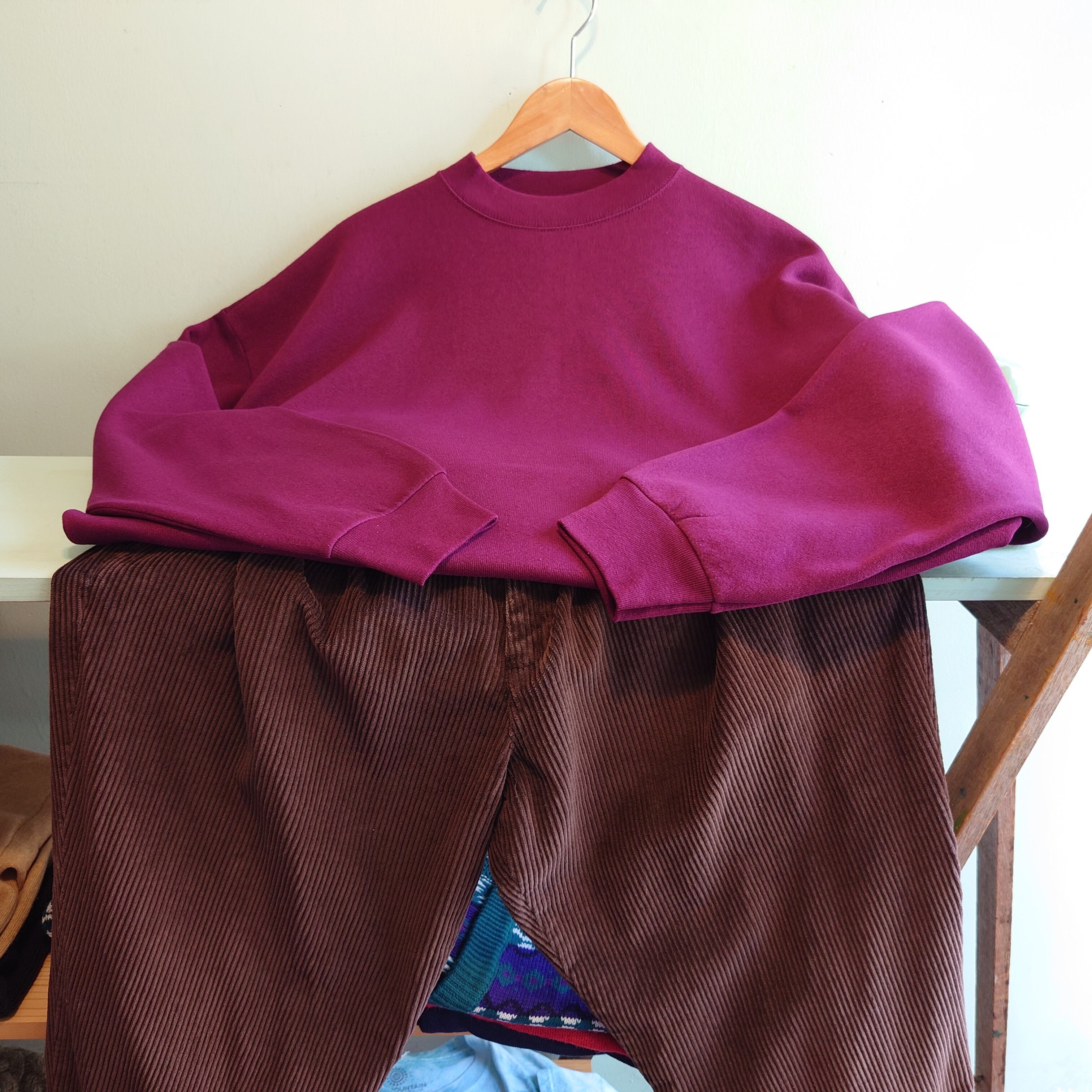 ★クタッとした柔らかみのあるシルエットと、ふわふわの裏起毛が気持ちいい、TULTEXのオールドブランクスウェット。無地ながら、そのレトロなシルエットと、ボルドーのこっくり感で1枚で様になる。無地好きにおすすめなアイテム。