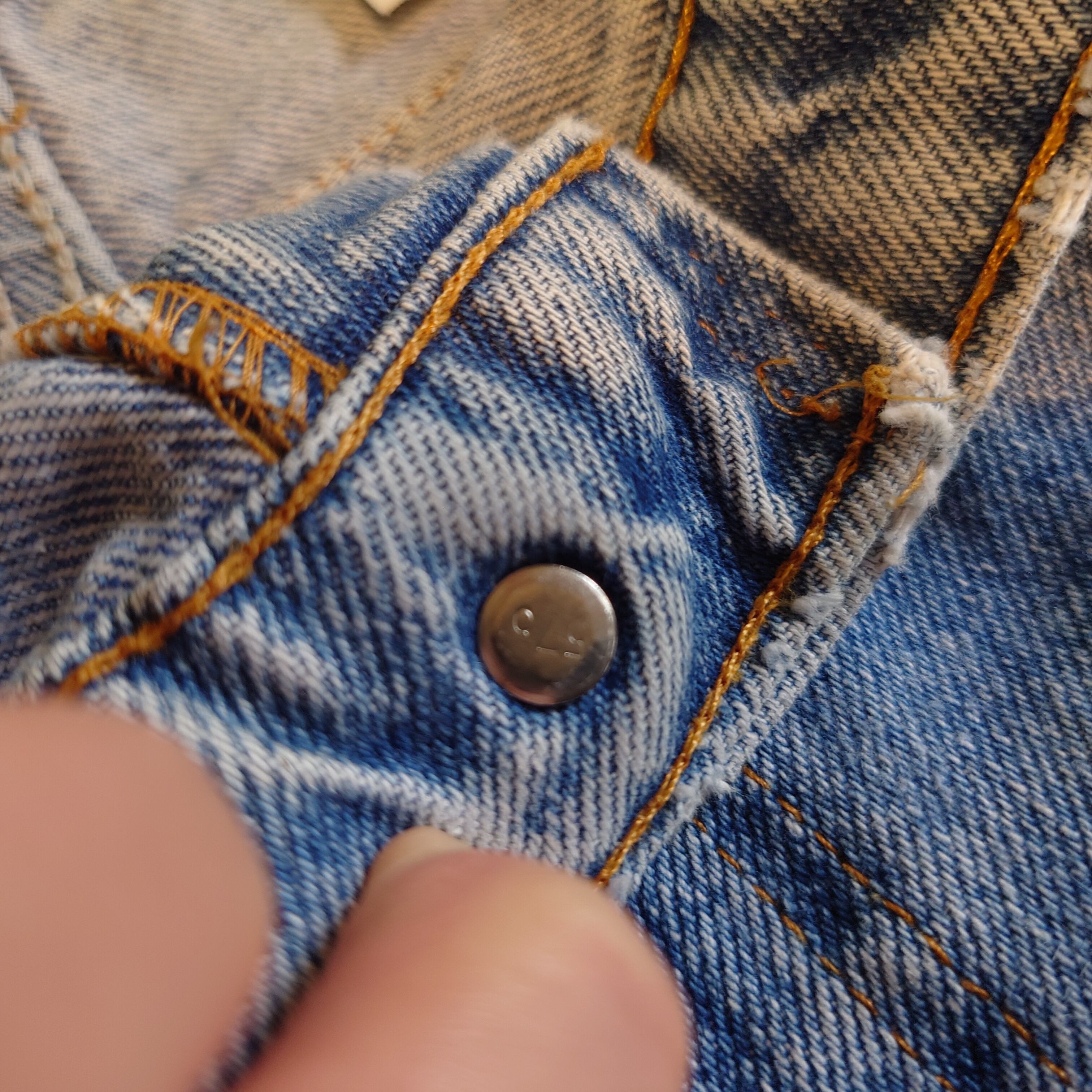 ★クラッシュのダメージ感、ブリーチのダーティーな色味がかっこいい雰囲気系の505。オールドアイテムらしいアイスブルー、ひげやあたりの色合いもロックな一本。