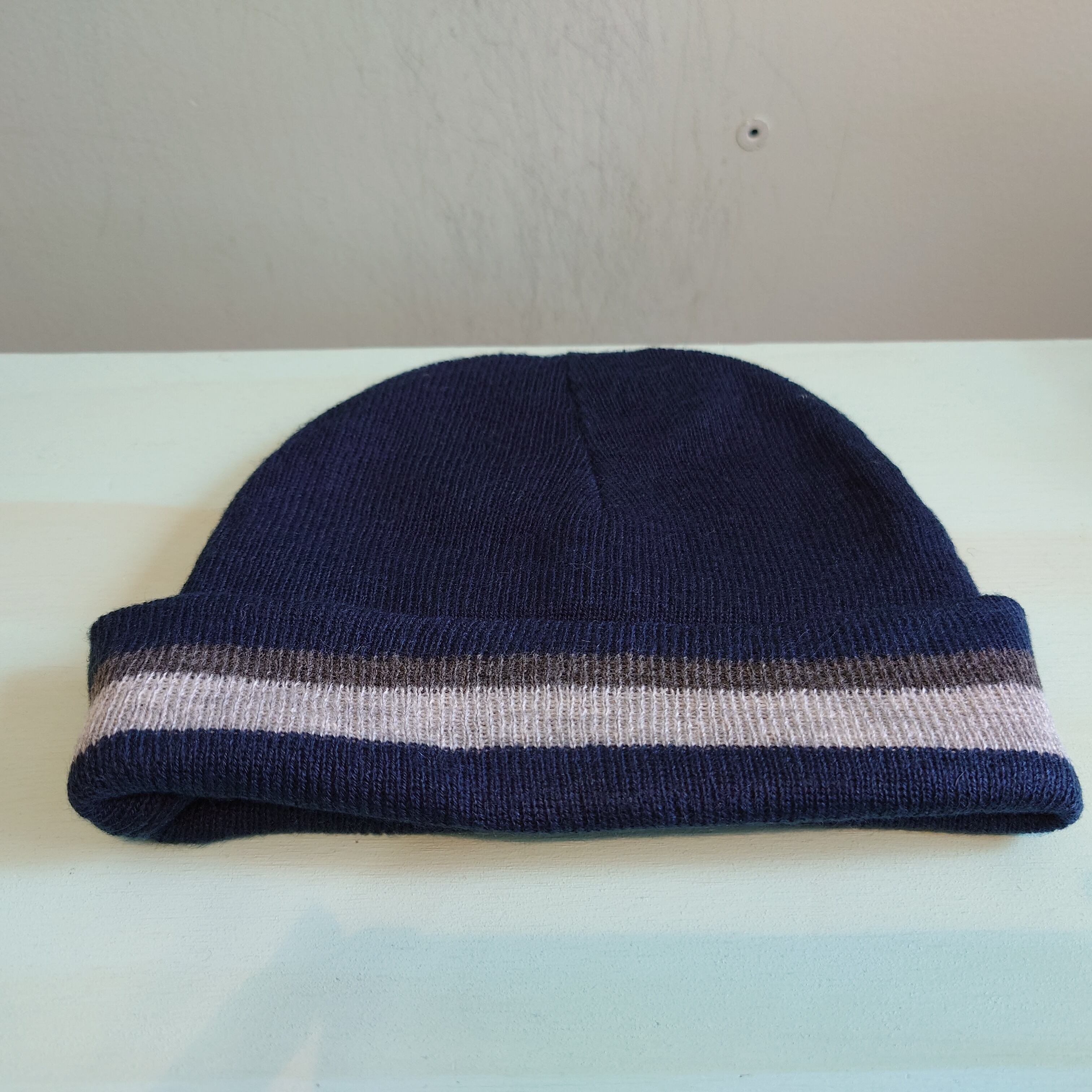 90-00s マルチカラー ライン入り ニットキャップ ネイビー グレー