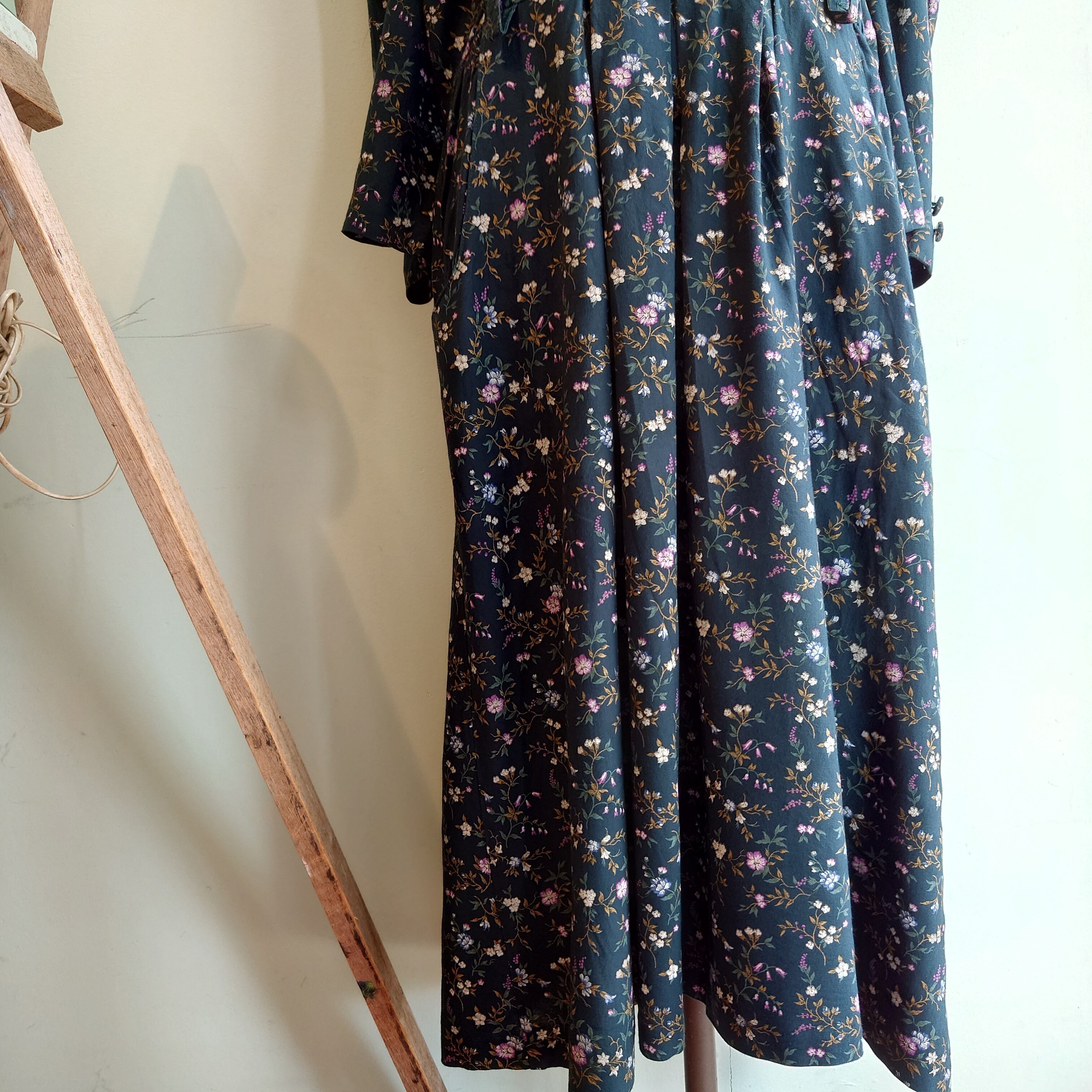 ◎REO ORIGINALS 〜80s ヴィンテージドレス フラワードレス USA製 ダークグリーン 花柄