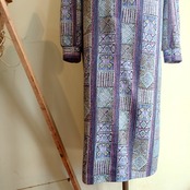 70svintage ヴィンテージドレス プルオーバードレス 総柄ドレス 青系