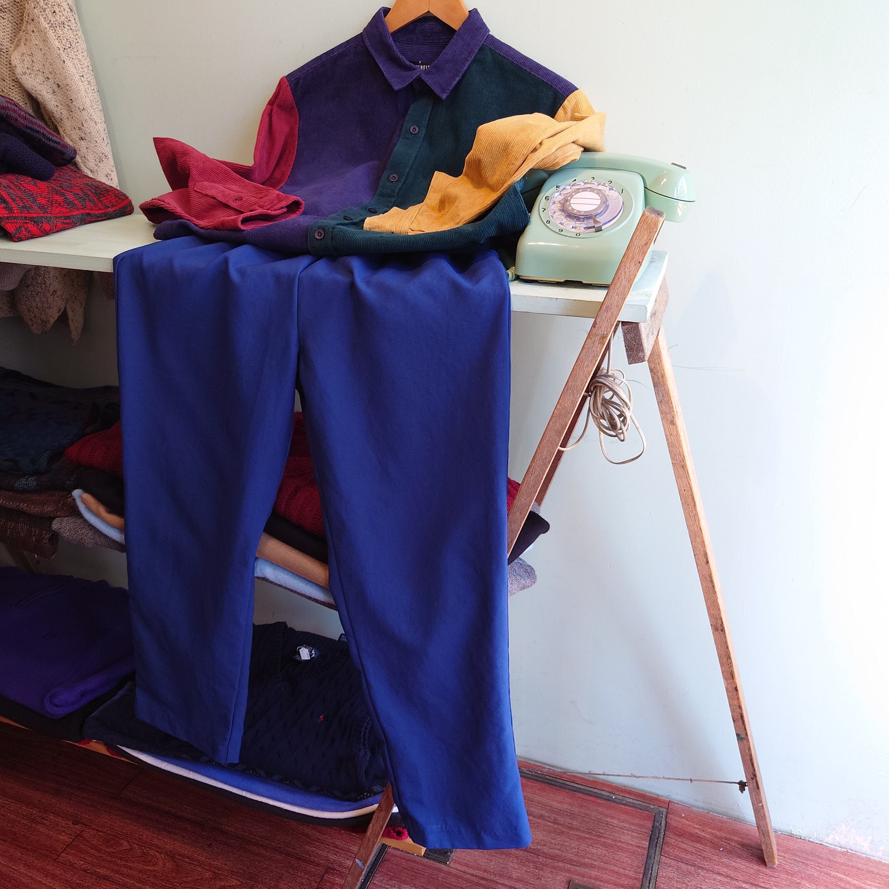 blair 90-00s イージースラックス カラーパンツ ネイビー 異素材 テーパード